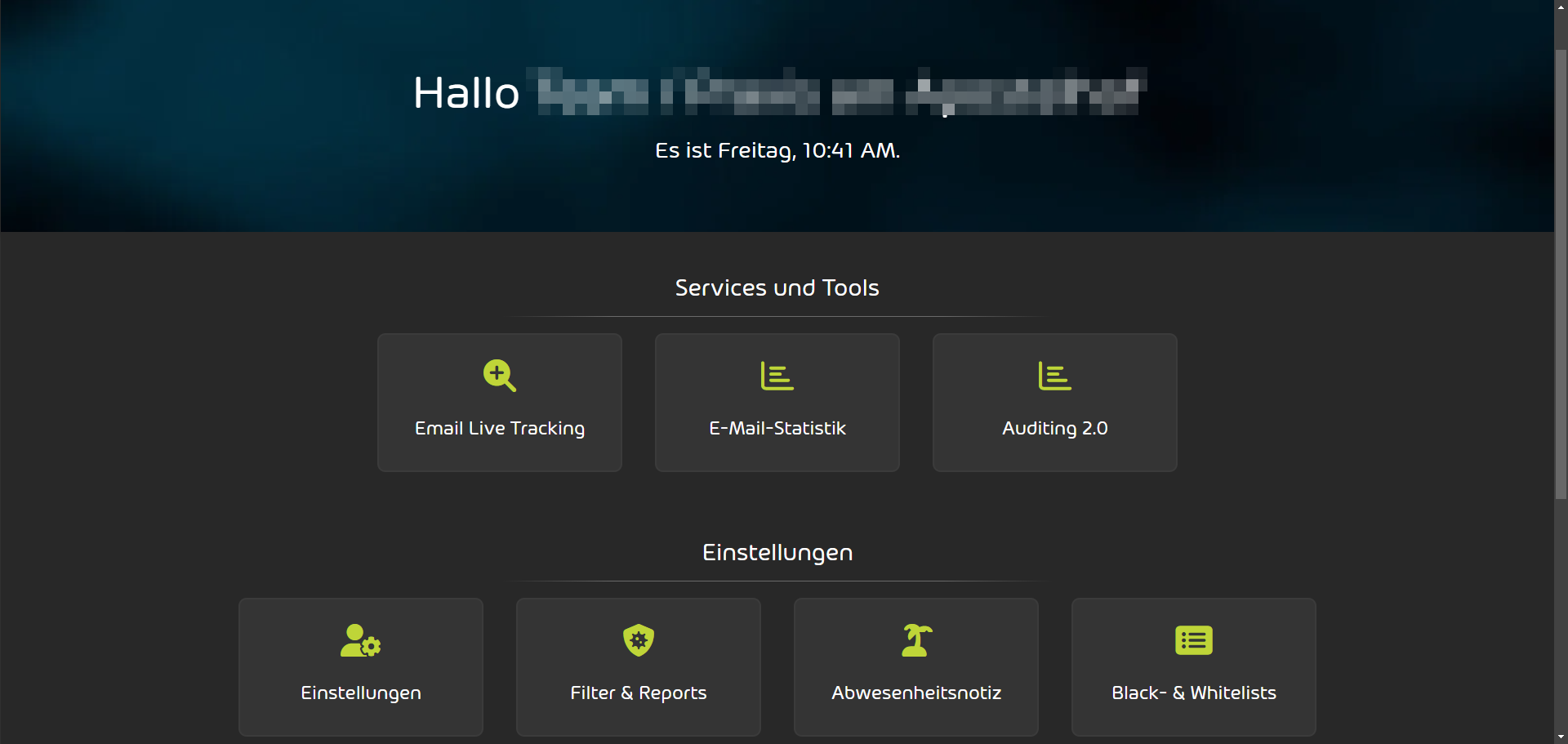 Nach erfolgreicher Authentifizierung gelangen Sie auf die Startseite von Hornet Security.