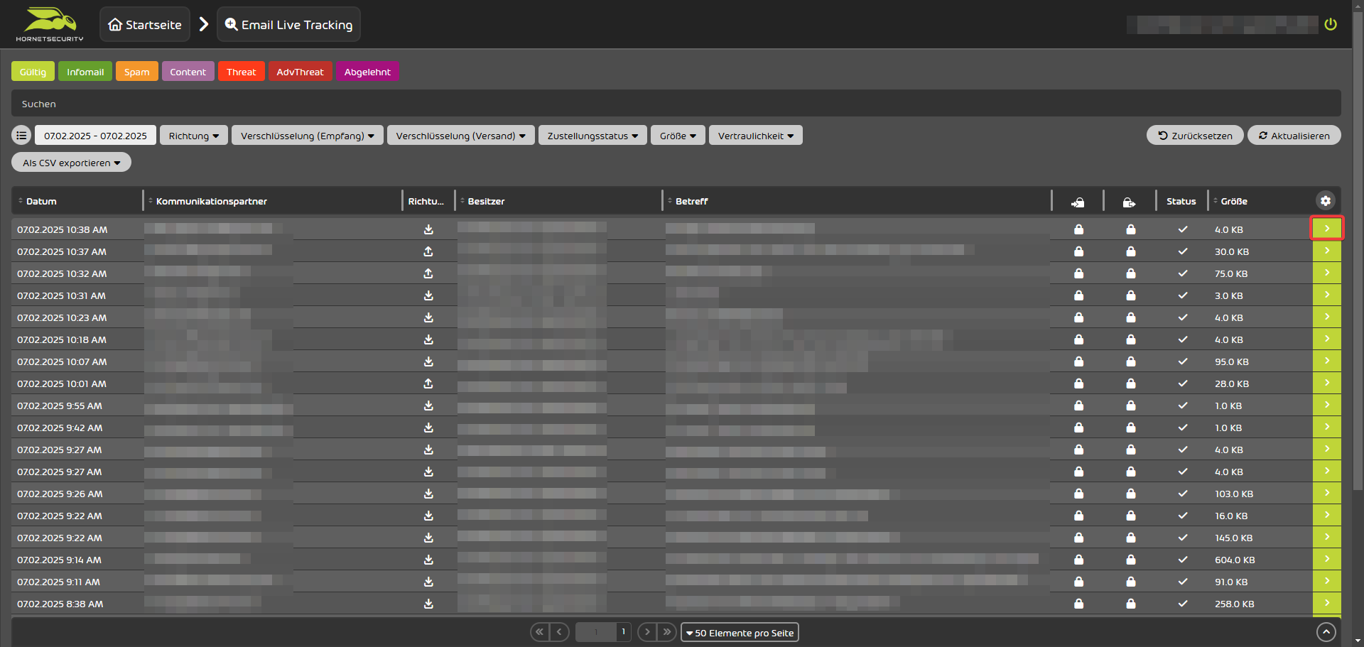 Im E-Mail Live Tracking können Sie den Verlauf eingehender und ausgehender E-Mails überprüfen.