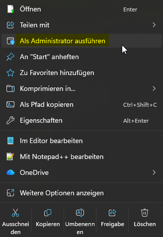- Starten Sie die Datei mit der rechten Maustaste und Auswahl "Als Administrator ausführen"