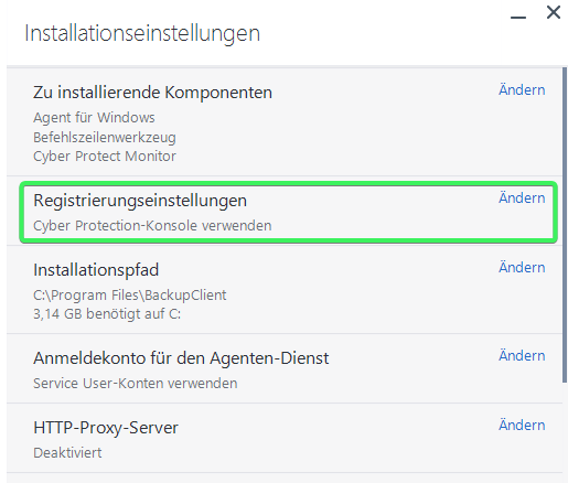 - Wählen Sie in der folgenden Ansicht ausschließlich "Registrierungseinstellungen" -> "ändern"