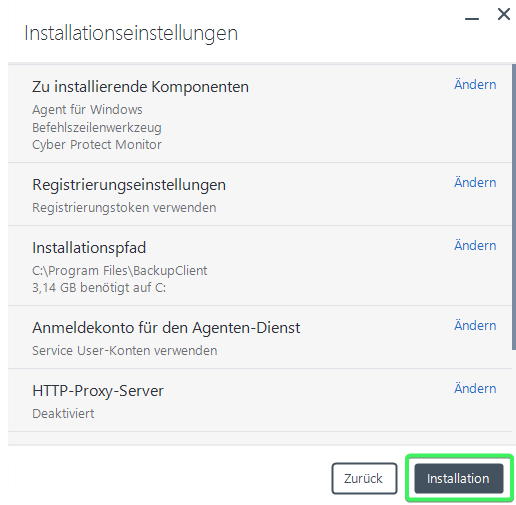 - Laden Sie die Datei mit dem Downloadlink herunter (typischer Name: CyberProtect_AgentForWindows_web.exe)