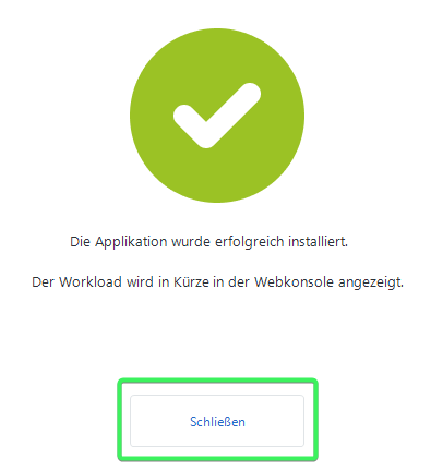 - Die erfolgreiche Installation wird wie folgt angezeigt und kann mit "Schließen" verlassen werden